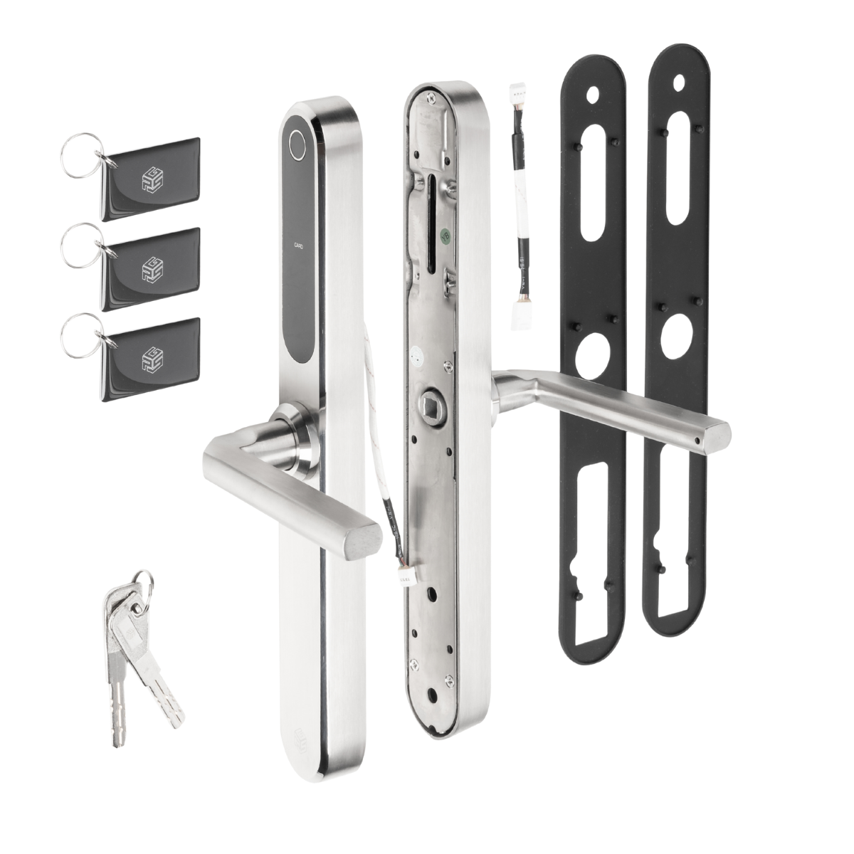 - 5 sposobów otwierania: odcisk palca* / kod PIN / karta / aplikacja (Bluetooth) / klucz mechaniczny